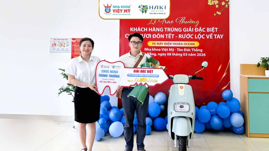 Nha khoa Việt Mỹ trao thưởng Xe máy điện cho khách hàng may mắn chương trình bốc thăm trúng thưởng “Cười tươi đón Tết, rước lộc về tay”