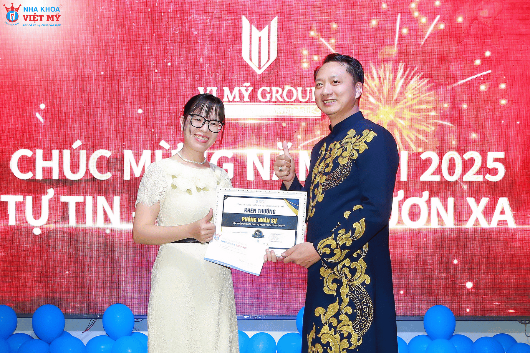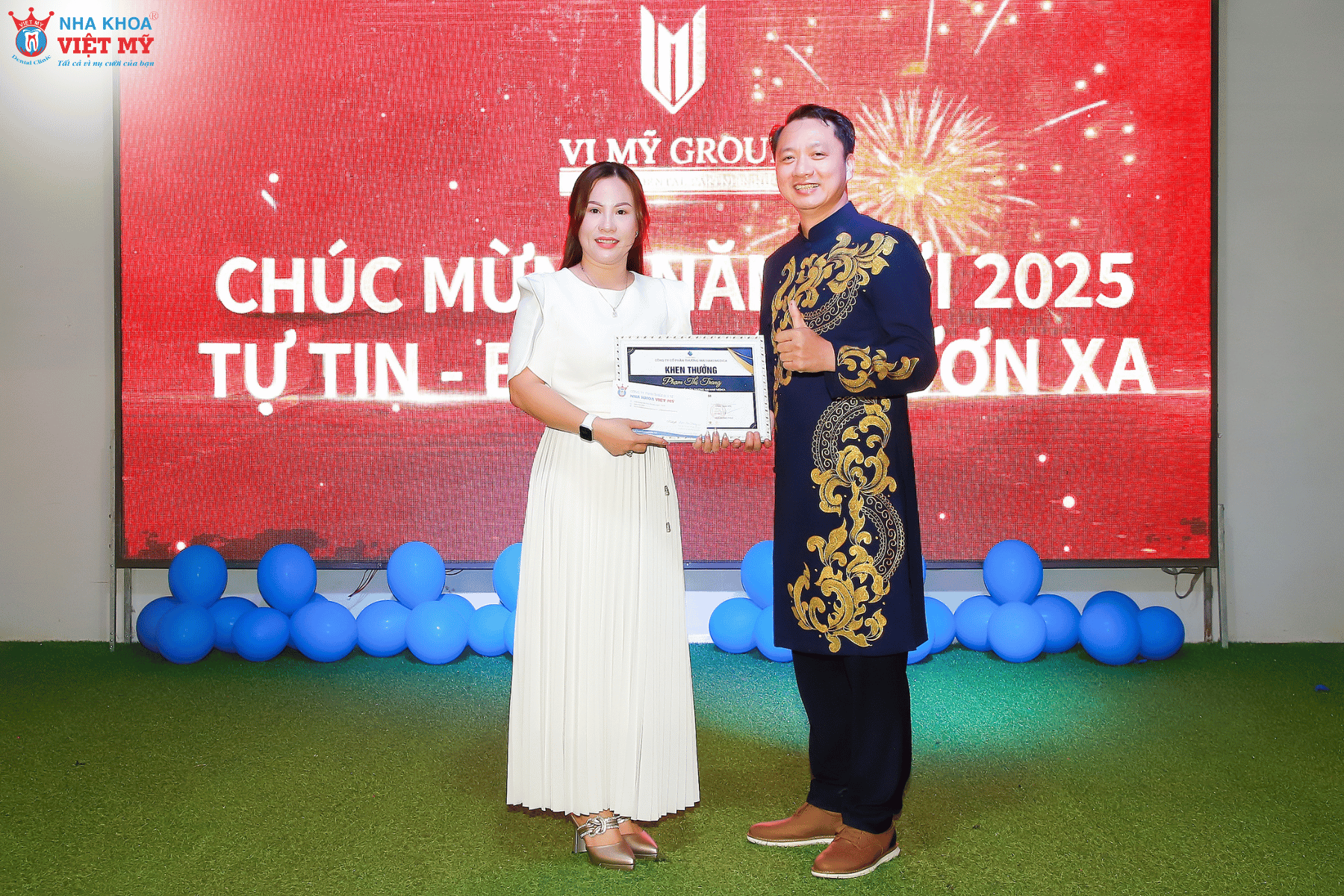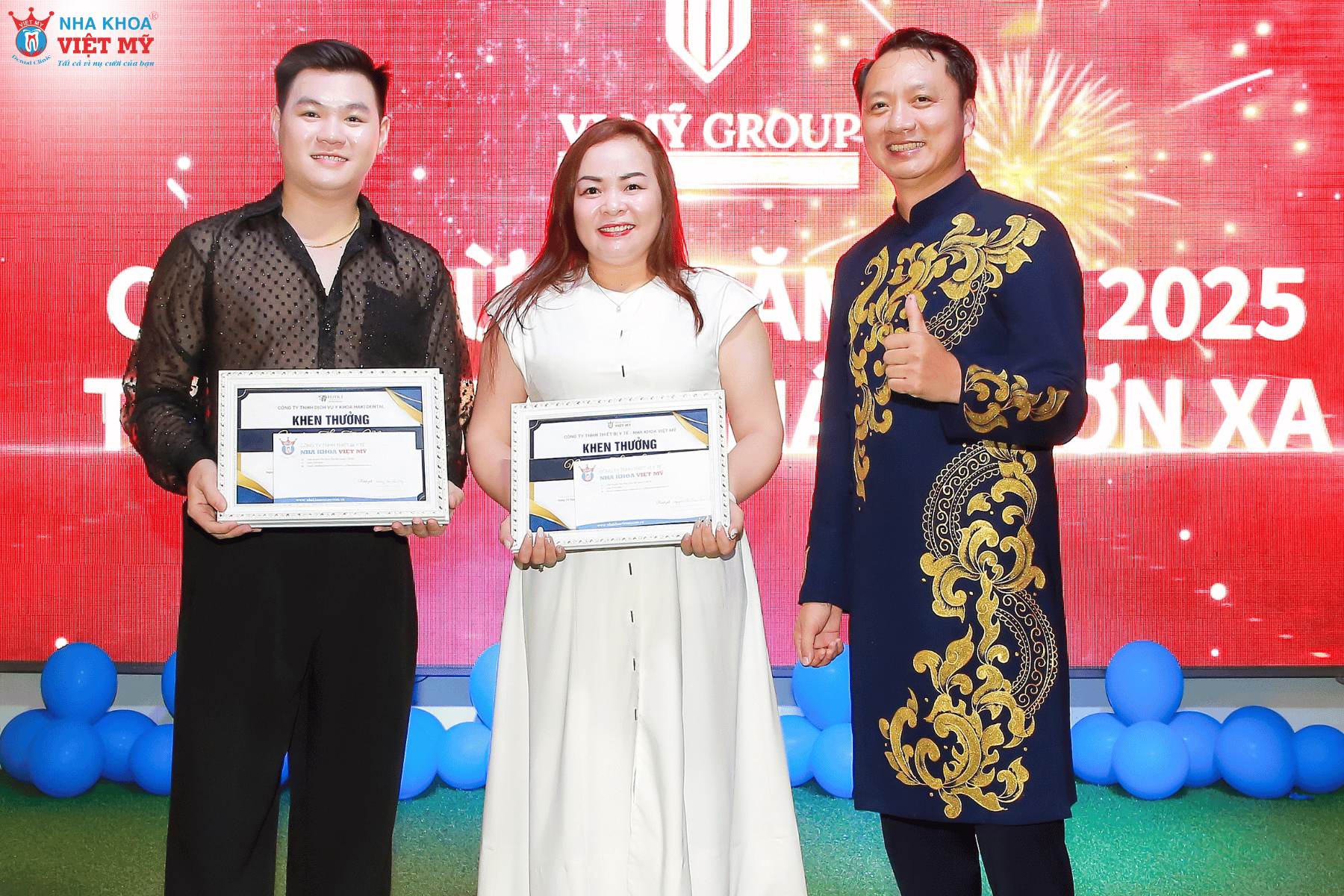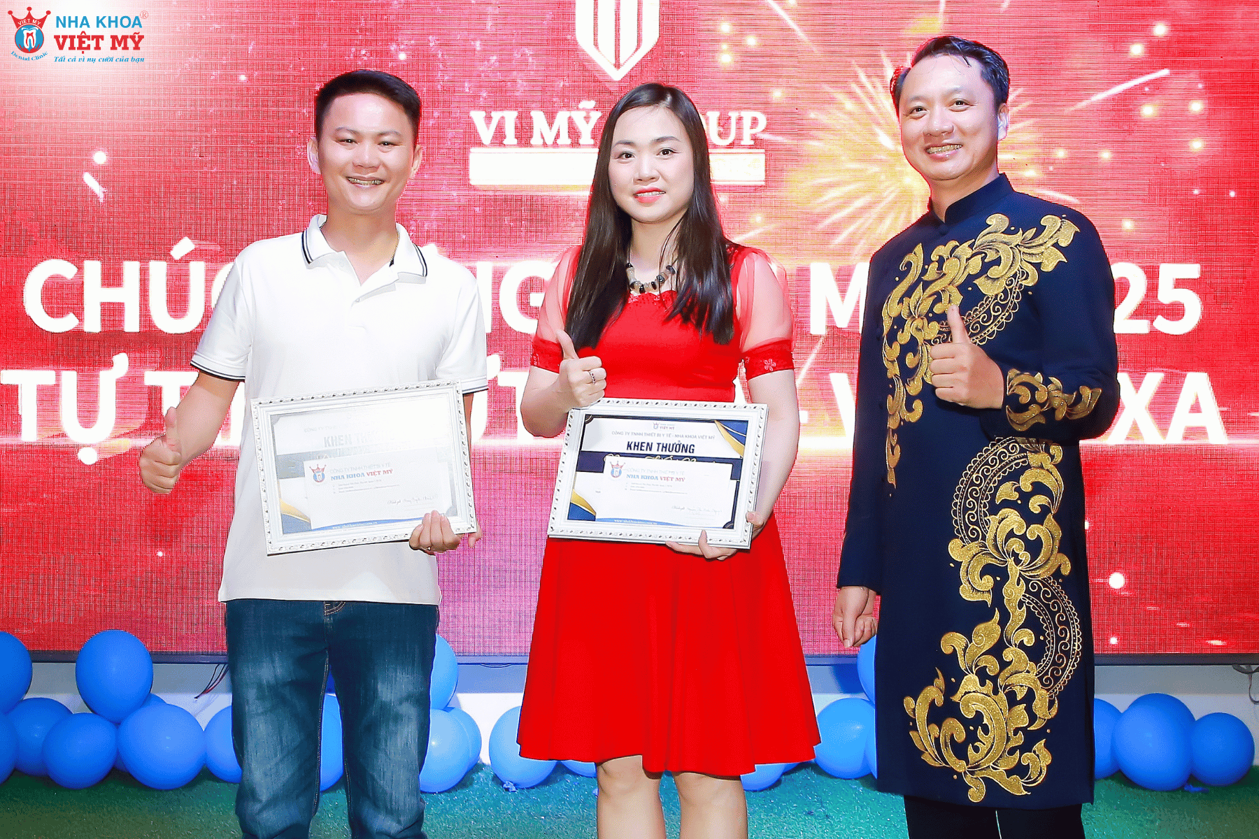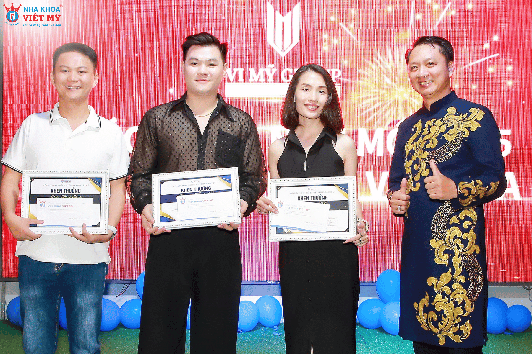 Nhân dịp này, ông Ngô Quang Phục và Ban giám đốc đã tổ chức lễ vinh danh, khen thưởng cho các cá nhân, tập thể có những thành tích xuất sắc, góp phần không nhỏ vào sự phát triển chung của công ty. Đây không chỉ là sự ghi nhận mà còn là động lực để toàn thể nhân sự Nha khoa Việt Mỹ tiếp tục phát huy năng lực, đóng góp vào sự phát triển chung của công ty.