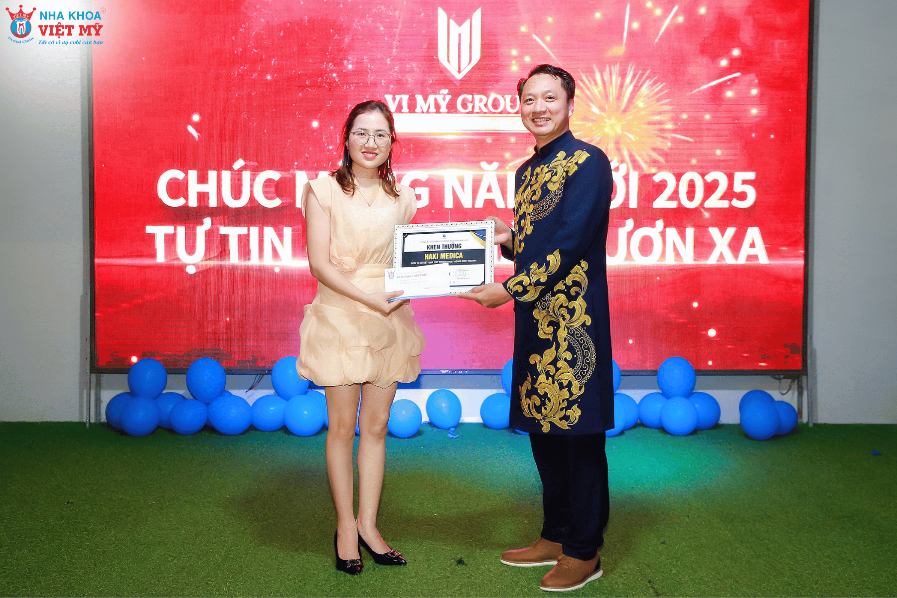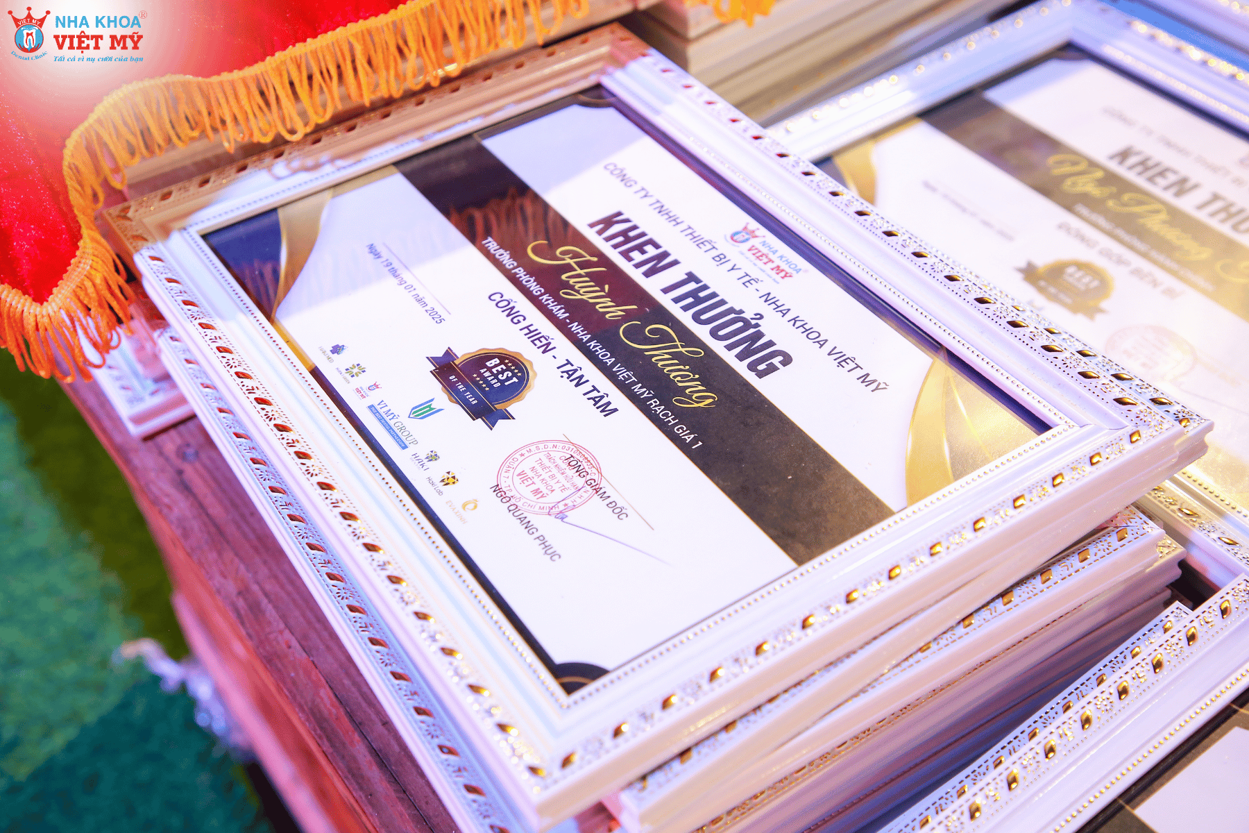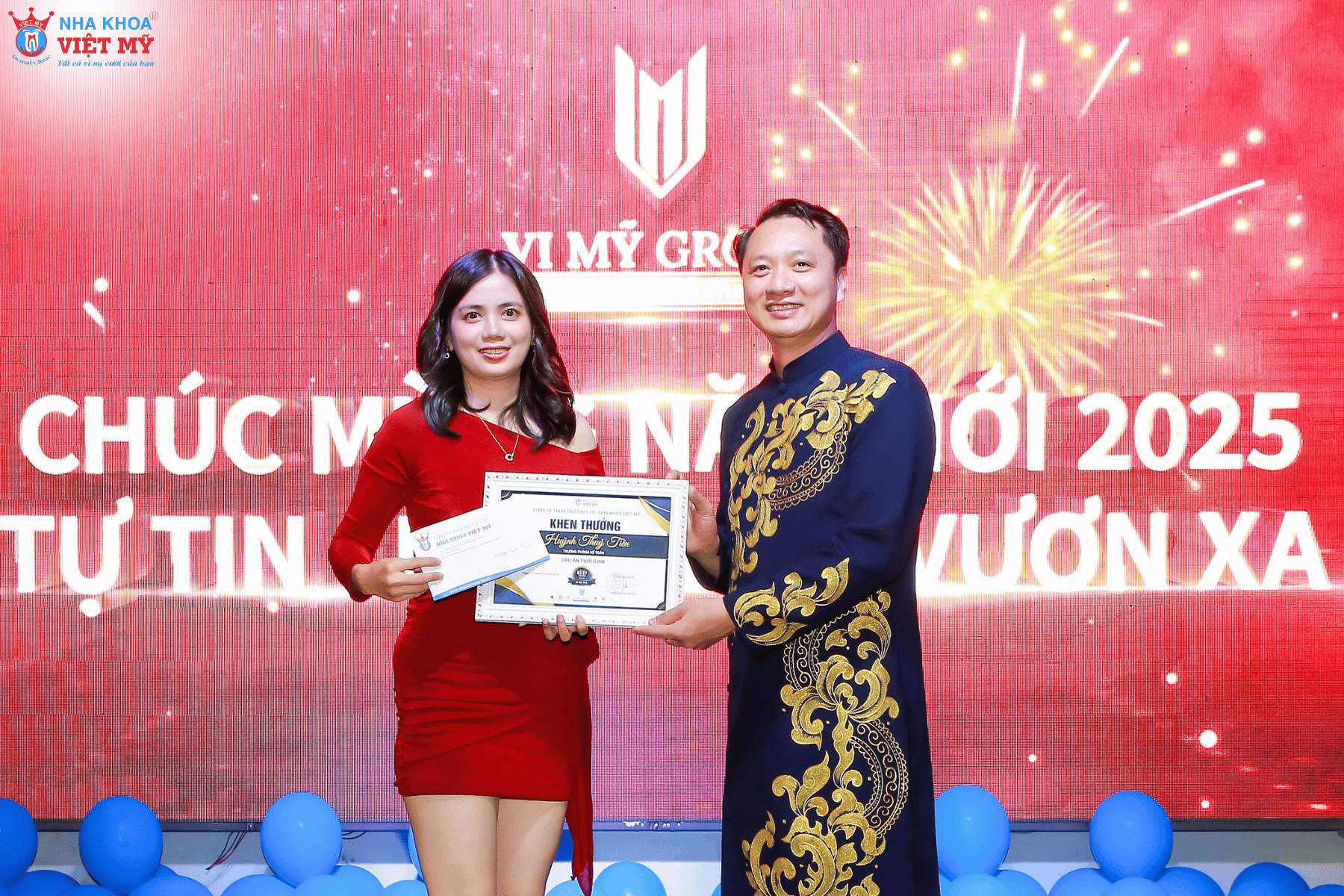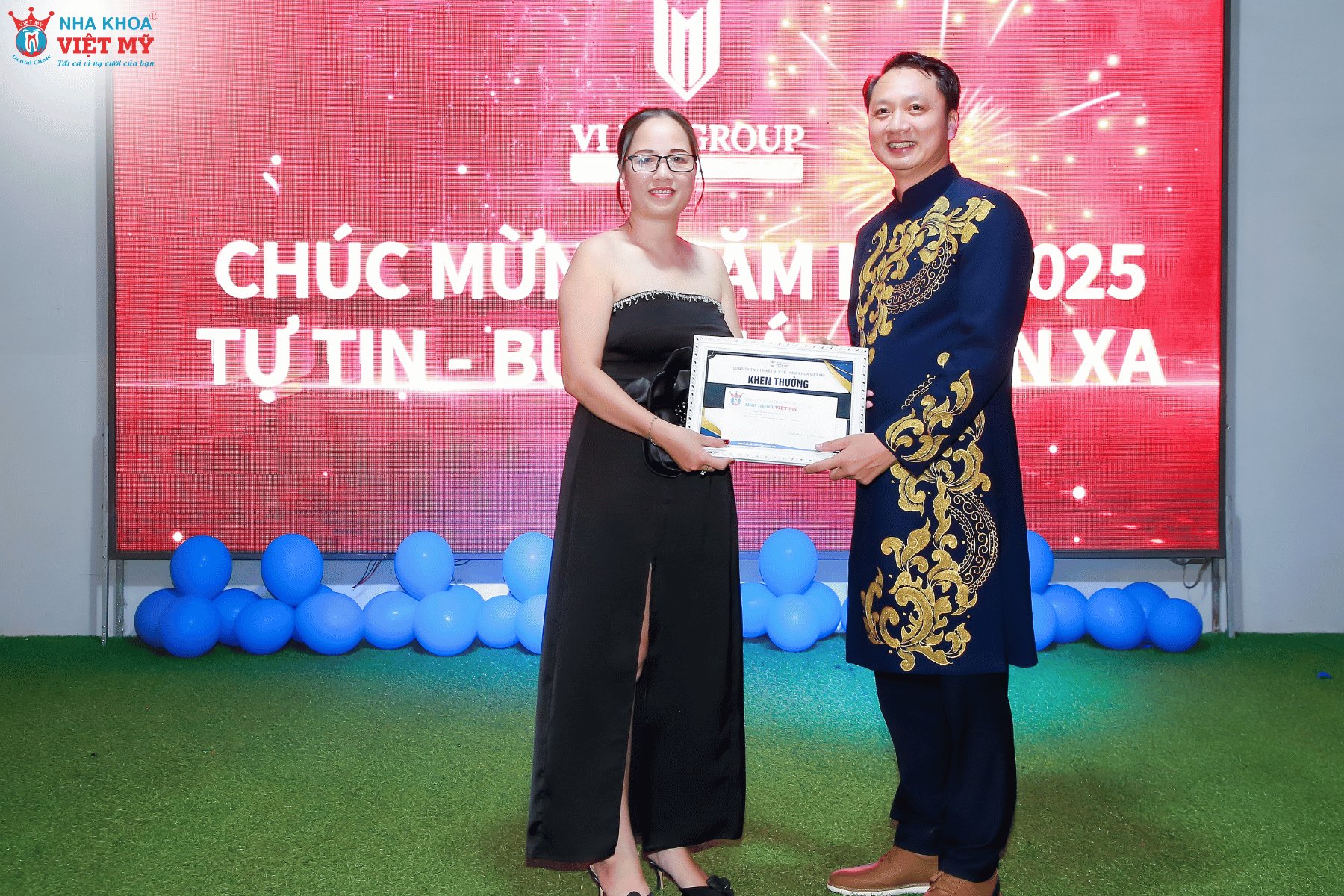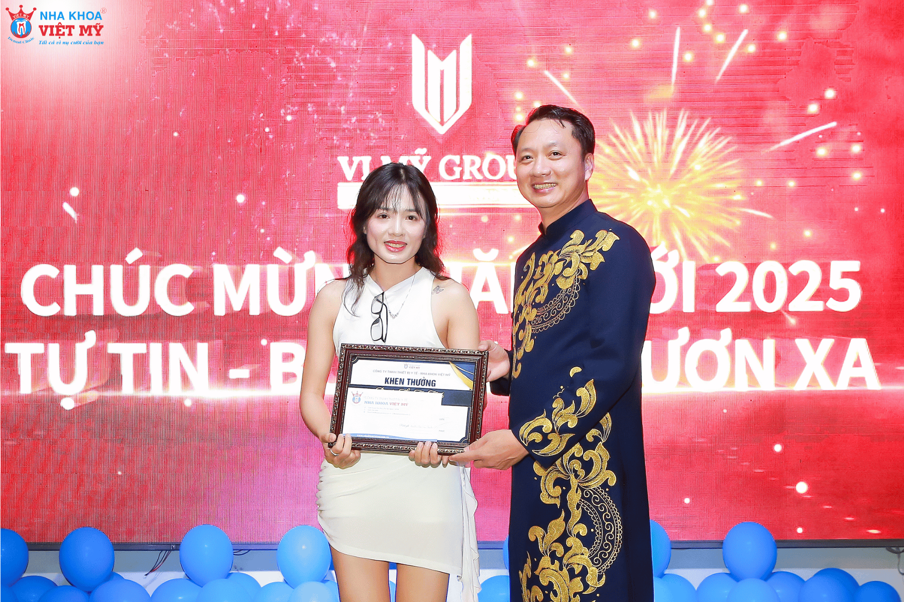 Nhân dịp này, ông Ngô Quang Phục và Ban giám đốc đã tổ chức lễ vinh danh, khen thưởng cho các cá nhân, tập thể có những thành tích xuất sắc, góp phần không nhỏ vào sự phát triển chung của công ty. Đây không chỉ là sự ghi nhận mà còn là động lực để toàn thể nhân sự Nha khoa Việt Mỹ tiếp tục phát huy năng lực, đóng góp vào sự phát triển chung của công ty.